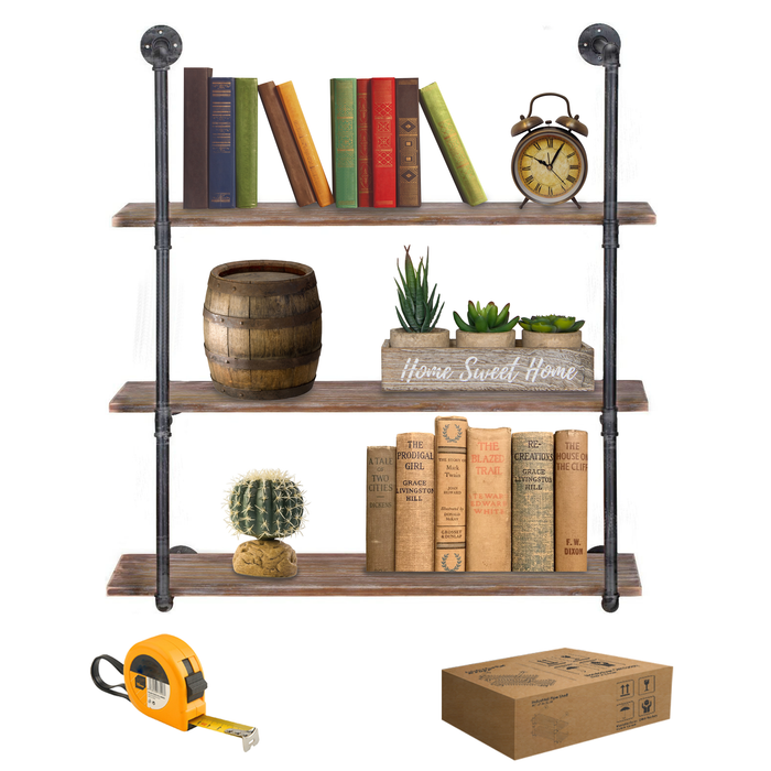 (3 Tier - 36in) Industrial Pipe Shelving, Industrial Floating Shelves